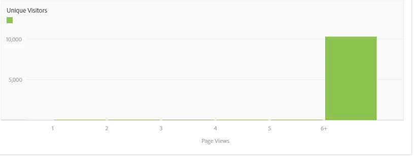 The 6+ contains 10,285 Visitors, which would mean there are 10,285 Visitors with at least 6 page views of the page I filtered by (so I should have at least ~60K page views of that page for that time frame).  However, I have only 14K page views for that time frame.  It seems like this isn't giving me what I want.  I validated via the segment and other reporting that my 14K page views is correct.  How should I be building this Histogram to get the correct results I'm looking for (distribution of page views per visitor)?