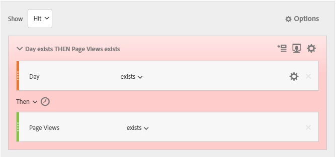 In this case the segment is a date then a metric PV. I am assuming Day and PV happens for every page and the segment is set multiple times in the above example. The result is A, B, C (which is then excluded from the visit, leaving D, the last page). If the criteria is met on page A, why does this "after" sequence not count D?
