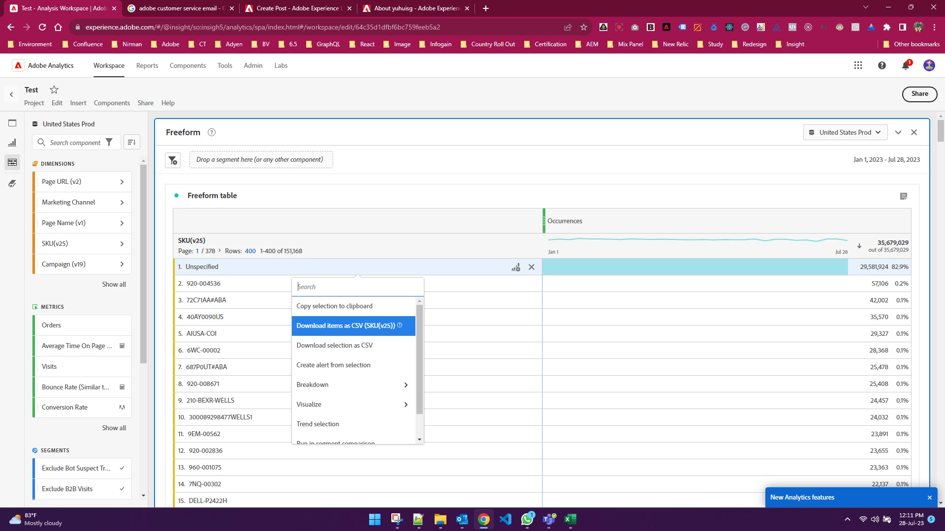 How to Download more than 50,000 records in Adobe Analytics workspace ?