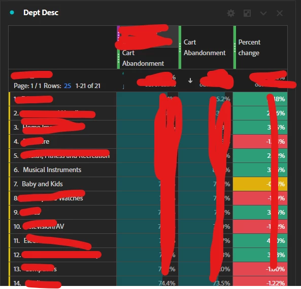 is it correct to breakdown cart abandonment rate by product category which is basically a product variable / dimension. Here cart abandonment is a calculated metrics. Below image is what I am trying to understand product wise abandonment rate.