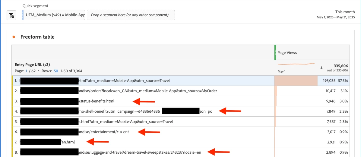 medium=Mobile-app but half of entry pages don't contain that parameter.
