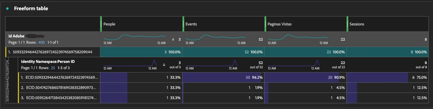 - The data is being ingested into AEP and then into CJA via a dataset with identityMap as identity.