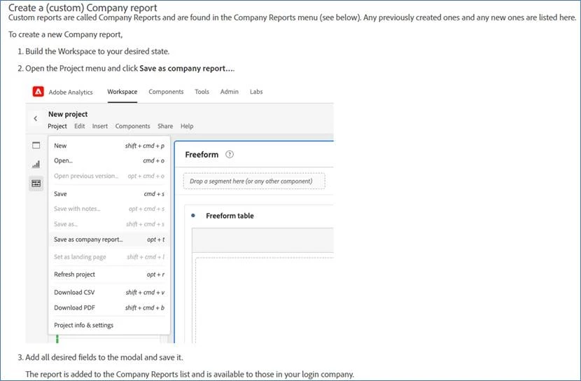We are trying to follow the below instructions in the new landing page documentation regarding Company Reports at this URL https://experienceleague.adobe.com/docs/analytics/analyze/landing.html?lang=en#company-report