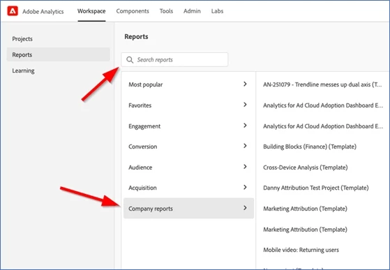 Adobe let me know that they will not be showing the "Company Reports" in the Reports navigation like originally communicated. Users will see Company Reports from the Create New Project popup. There will also be a new "Company Folder" on the Projects page where company reports can be accessed.