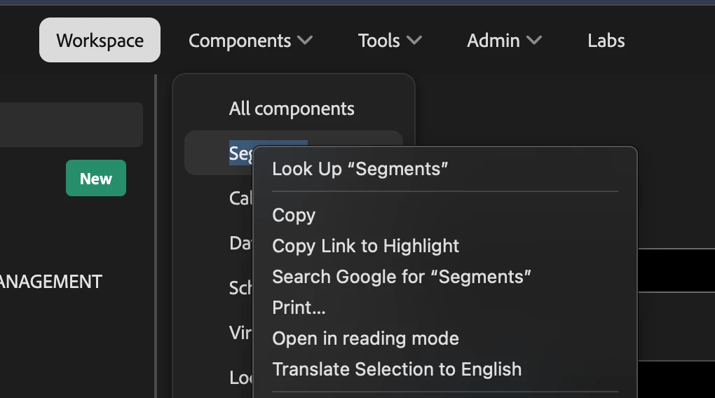 The UX update to the Adobe Analytics Workspace UI has removed functionality to right click "open in new tab" for Workspace, Admin, Components, etc in the tool bar.