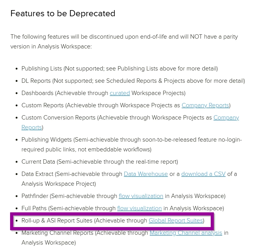 Understanding the limitations of roll-up report suites, we still want to make one in our organization. Are they no longer available though? Most information about this aggregate report suite is almost 10 years old, and my personal UI does not seem to have the "create roll-up report suite" button, despite having credentials that should allow me to do so. Is this something that becomes available after creating a report suite group, or has adobe dropped this feature quietly that was never a best practice in the first place?