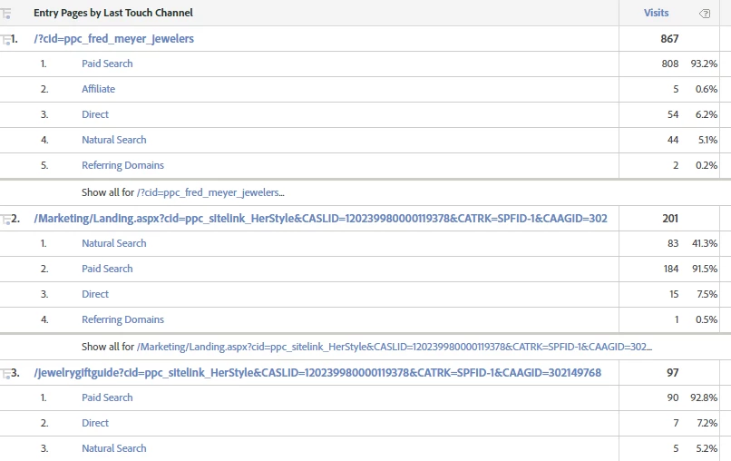 Also I can see cid=ppc contain pages aas entry pages for natural and direct channels. How does it possible? If anyone has idea on fixing this tracking, please let me know?