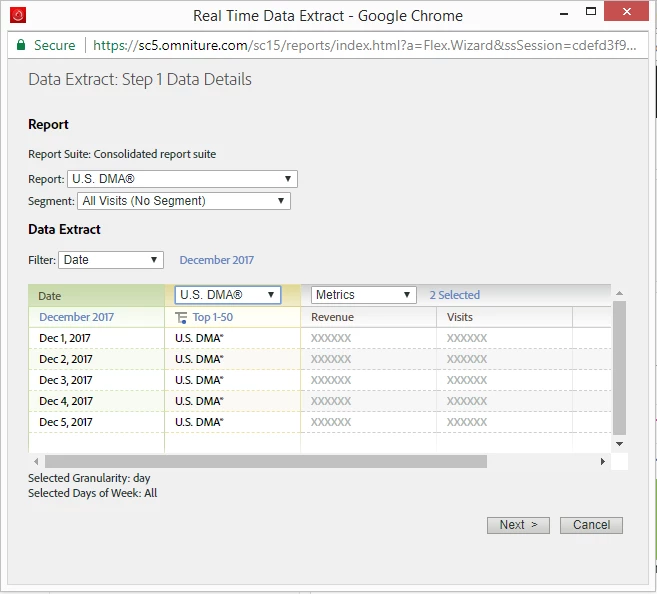 Please see the attached screenshot. We want to create a report which is segmented on multiple parameters like DMA, Channel, Brand and Date as well.