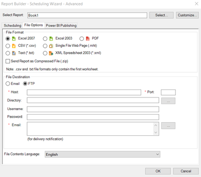 There is an "Advanced Scheduler" option that will allow you to send the files to an FTP server: