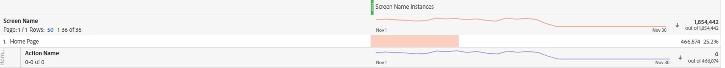 However, I've been trying to see the actions that happened on some specific screens but got 0 results. Is it possible to do that?