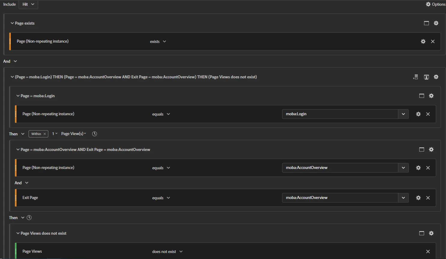 So I added the exit page has to be page B and I don't won't to have any page view after: