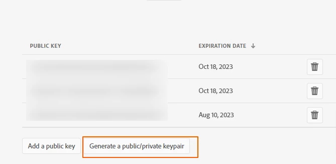 However, I now want to share my IO Project with another API users. However when he logs into Adobe IO, he gets a 'read only' version of my IO project. Which means he can not generate is how public and private key nor can he get what he needs to make a connection.