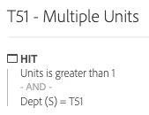 Likewise, the below doesn't work for Multiple Units - this doesn't necessarily mean there's more than 1 Unit of the desired Department, just that there's more than 1 Unit in total in the order
