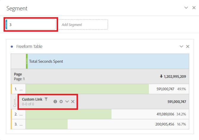When i added custom link, i can see few line items with its own Total Seconds Spent.