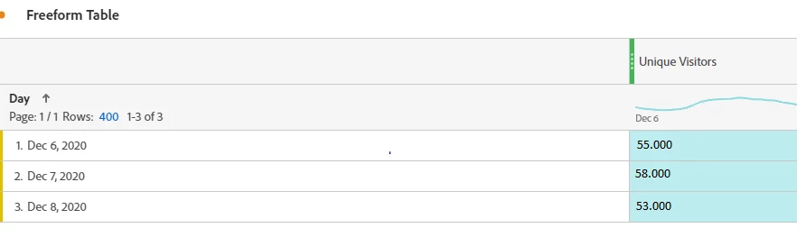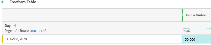 If have a Freeform Table with Unique Visitors per Day. If I select only one day in the date range of my panel, I get a certain amount of Unique Visitors for that day (let's say 50.000). If I select multiple days in the Date-Range, I get a different number of Unique Visitors for the same day (see below).