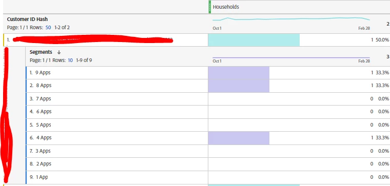 The results do not look right though as it returns values for several segments as per below. I have tried a few things and aren't getting anywhere