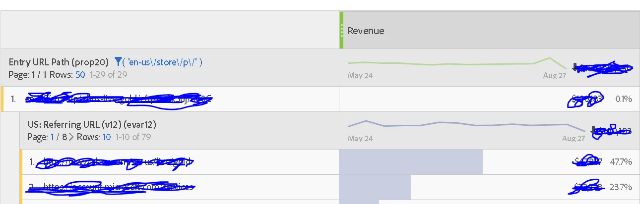 I have a database that has all the product details and I am trying this report to my database so the report looks more meaningful (currently there are only URL's under the Entry URL path, US referring URL columns and by joining them to my database I could have a valid product Name and other details).