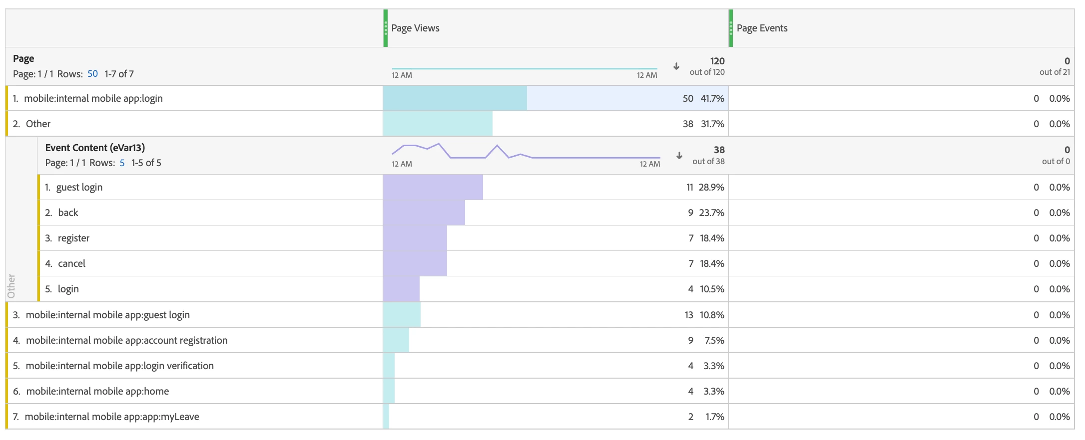 Why event tag (trackAction) implemented by Context data on Mobile App would be fired as page view and Page Dimension captures it as "Other"