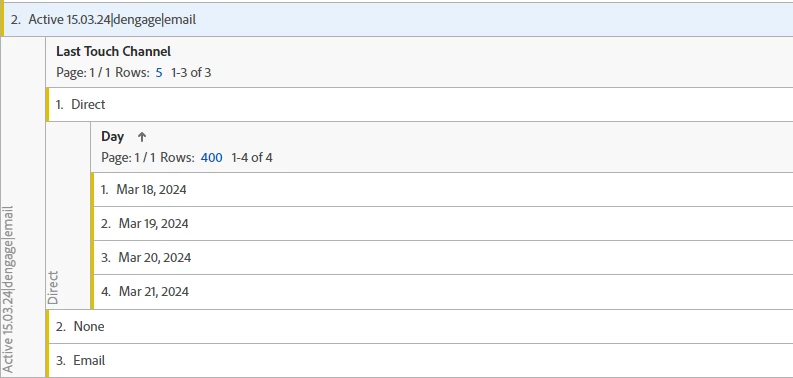 But when i split the tracking code for the last touch channel a tracking code of this type: Active 15.03.24|dengage|email ends up in the Direct channel, some in "None" and just a few in my Email marketing channel!! How it is this possibile?