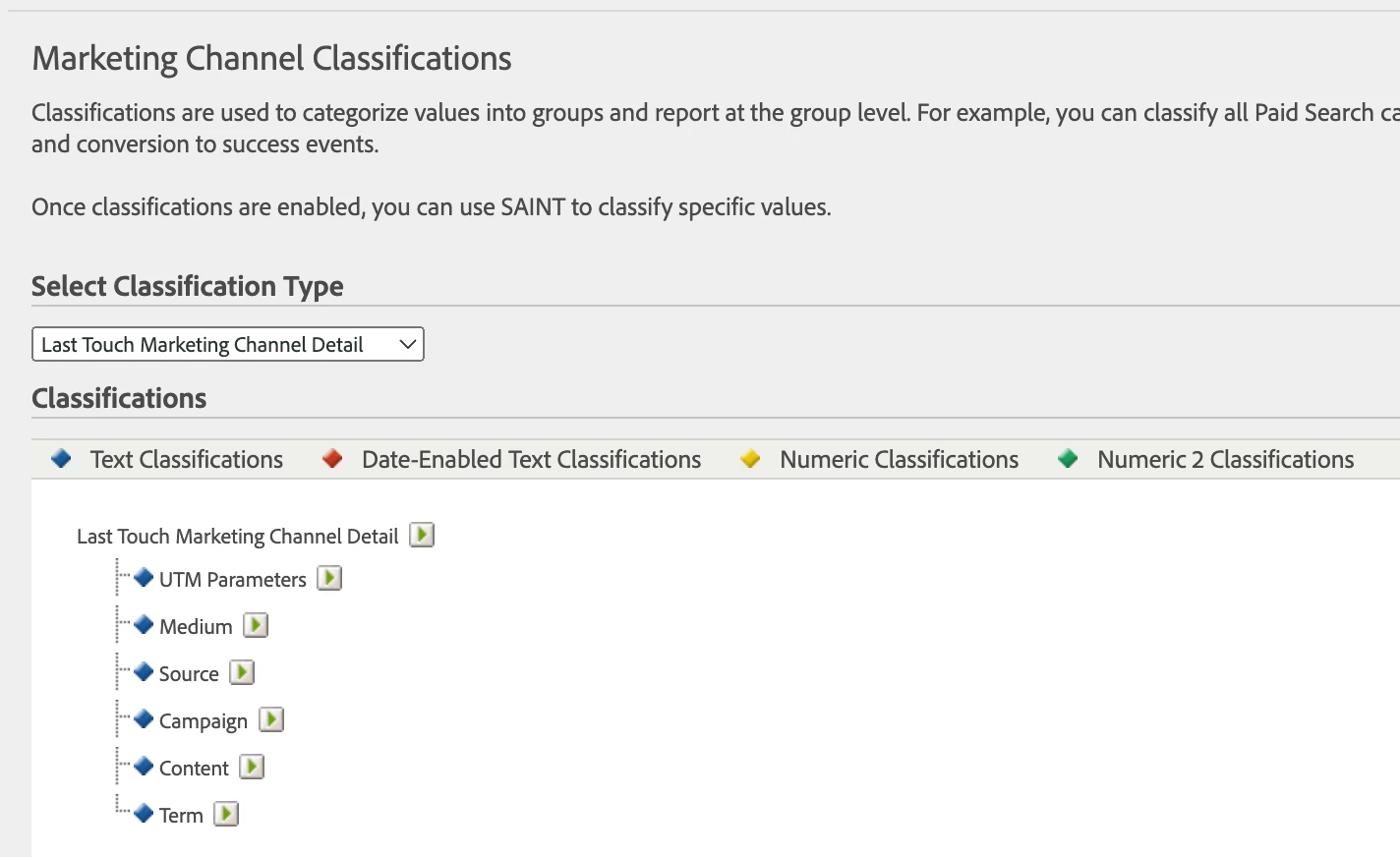 First create the variables for Last Touch Marketing Channel Details in Marketing Channel Details (Report Suites>select report suite>Marketing Channels>Marketing Channel Classifications).
