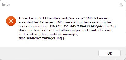 baaam token error 401 - user did not have valid org / does not have one of the following product context service codes active dma_audience manager, dma_audiencemanager_int
