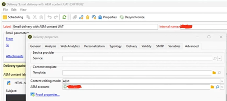 Now, once we configure the External Account, it can be used in our ACM Delivery Templates, by going into the Delivery Properties section and select the created AEM External account as shown below: