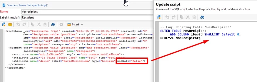 ACC seems to be overiding my custom sqlDefault="Null" attribute, how do I tell the schema to allow nulls?