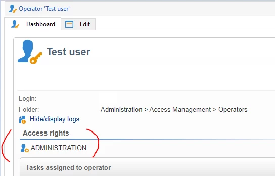 - Make sure, the operator logged in to the same instance (Dev/stage/PROD environment) where you have provided 'ADMINISTRATION' rights.