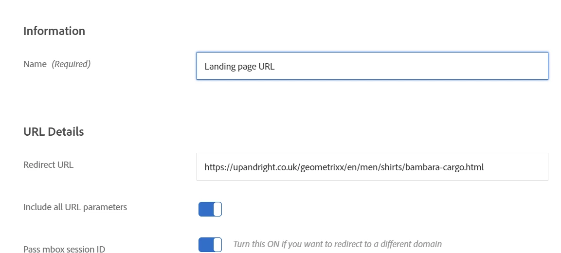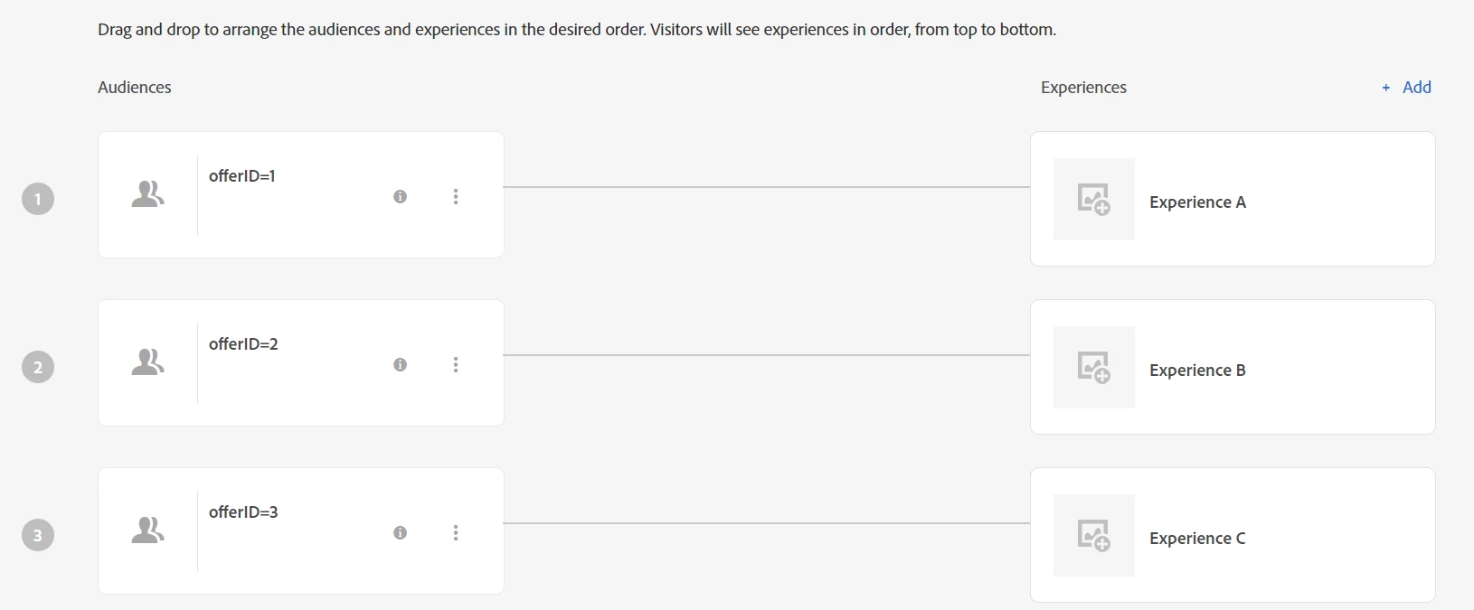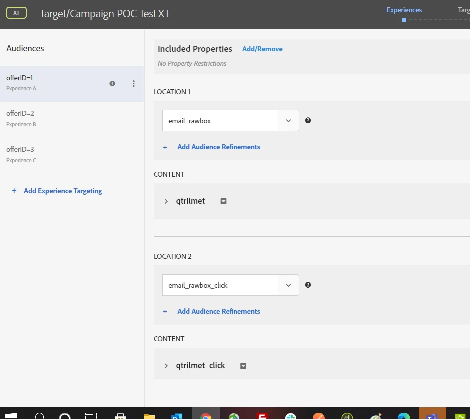 and each audience refer to an Experience that contains the 2 redirect offer (depending on their location image or click)