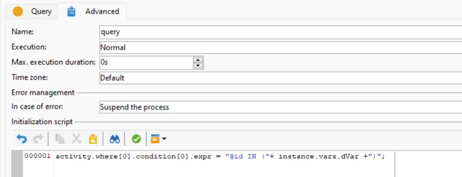 In my workflow the above (dynamic) values are stored in an instance variable in JavaScript before the Query.