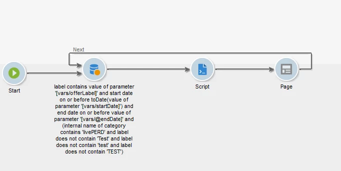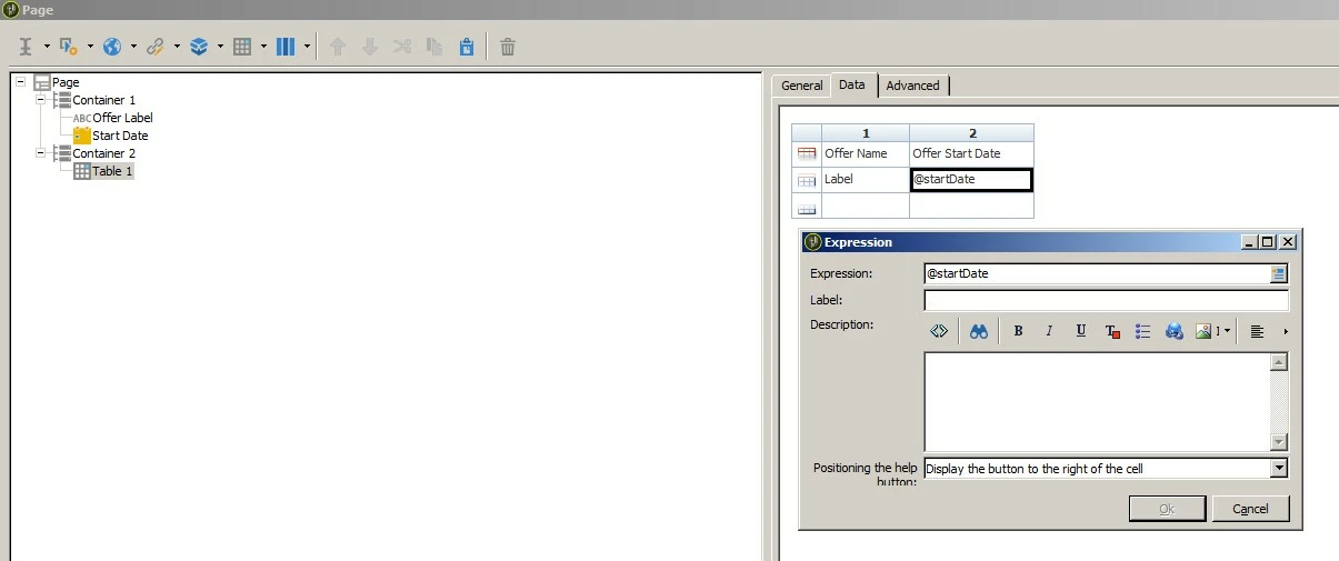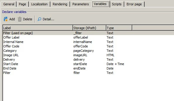 I am trying to build a report that shows information from our offer schema (label, start date, end date, HTML Rendering, etc.) based on use input of offer name and date.  I.e. user enters the offer name or start and end date and they are able to see the offer information.