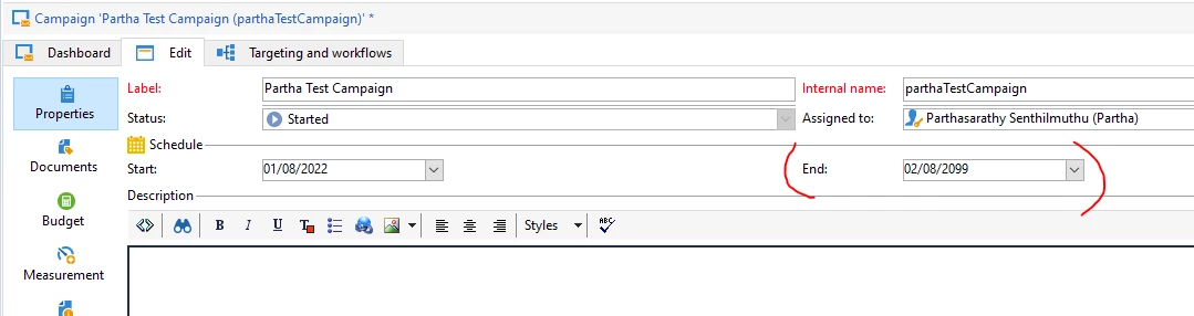 When the End date is greater than or equal to current date, and Start date is lesser than or equal to Current date , then the campaign will be in 'Started' State. (After modifying the date, Just refresh the console to see the status get updated)
