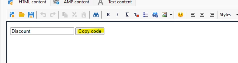 Copy discount code within HTML (copy to clipboard functionality in html)