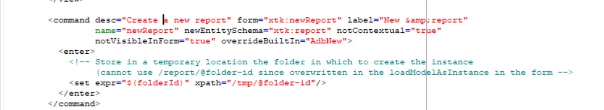 I understand what you saying now. I replied based on initial question where you were getting error from that <check> tag under form . I checked the nms:core Navigation hierarchies and over there you can see for nodeModel of recipient,groups and Reports they have used <command> to call another form and there they have might set the folderId Not sure exactly how it is working. But something you can look into .