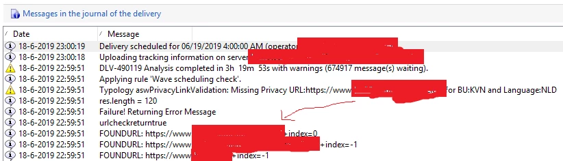 Delivery log refers to an URL index=0
