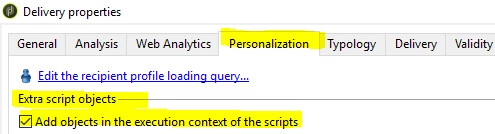 I am able to extract the information using the "Extra script objects" in the personalization tab of the delivery: