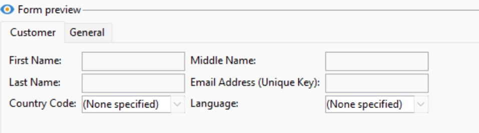 In the example below, I have created an input form with two content tabs (Customer and General) and I've made the input boxes read-only:
