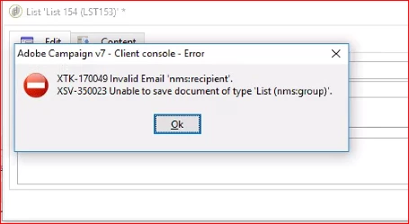 Error when List is created 'XTK-170049' Invalid email 'nms:reipient' | Community