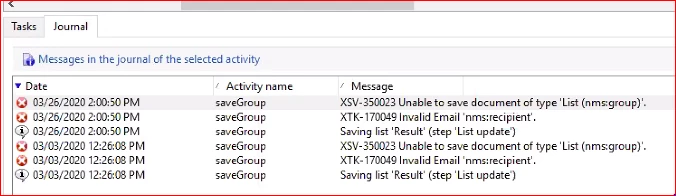 Error when List is created 'XTK-170049' Invalid email 'nms:reipient'