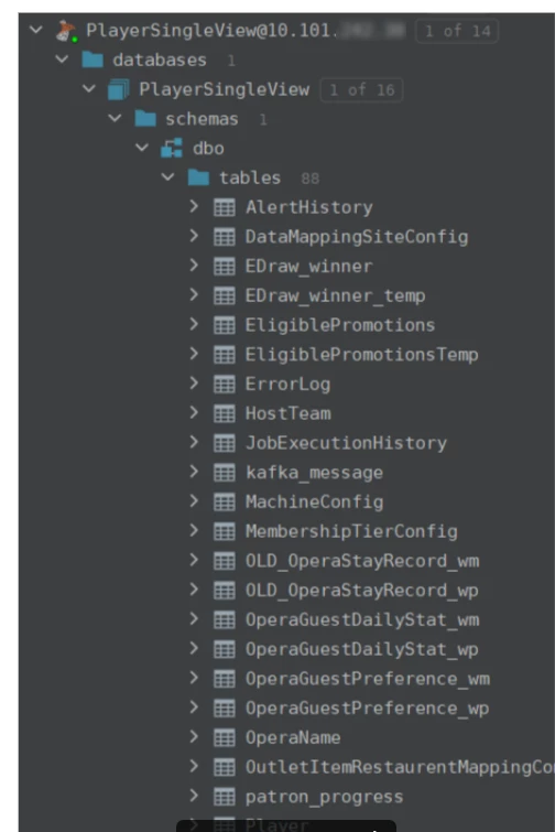 But in Datagrip, we can see all the table we needed by the same db user