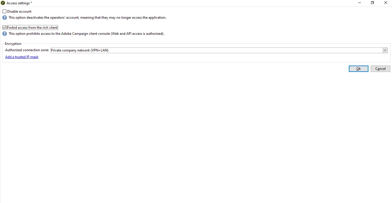 Forbid acess to Rich client: Adobe Campagin