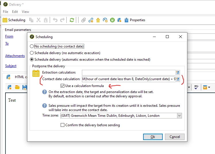We have this formula, it tries to contact Recipients between 8 am and 8 pm, in this case it is set to 9 am.