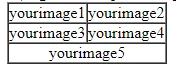 The idea is to print images using <tr><td>. Example: if there are 4 (even) images, then first two will be in a row and the remaining two will be in the second row.