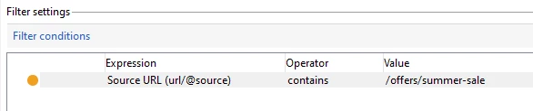 I’m trying to build a query in Adobe Campaign Classic to target recipients who clicked on a specific link in a previous email send. However, the link structure may vary slightly each time due to appended tracking parameters, so I’d like to use a "contains" condition rather than an exact match.