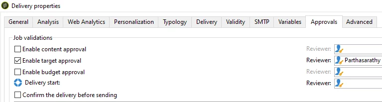 If you want to approve the target count alone, then you can open delivery > property > approvals tab > enable target approval.