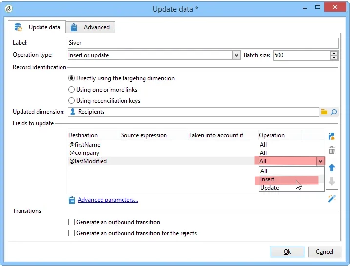 If you are using an update data activity in your workflow you can choose for each field at what operation should it be modified/inserted :