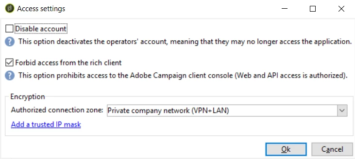 Based on documentation, we can forbid an operator to access to the rich client: