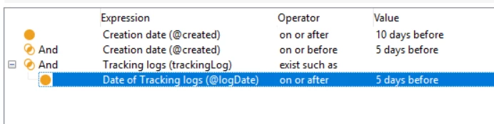 In Campaign how could I do this query "result of the query filter is the set of recipient having creation date between the range of time and at least a tracking log before [TODAY-x days]"?