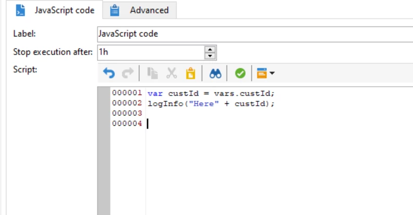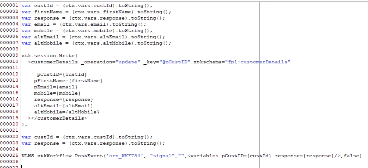And here is the javascript activity to pass values from the ctx variable to the temp variable, and I am updating those values in the data schema.