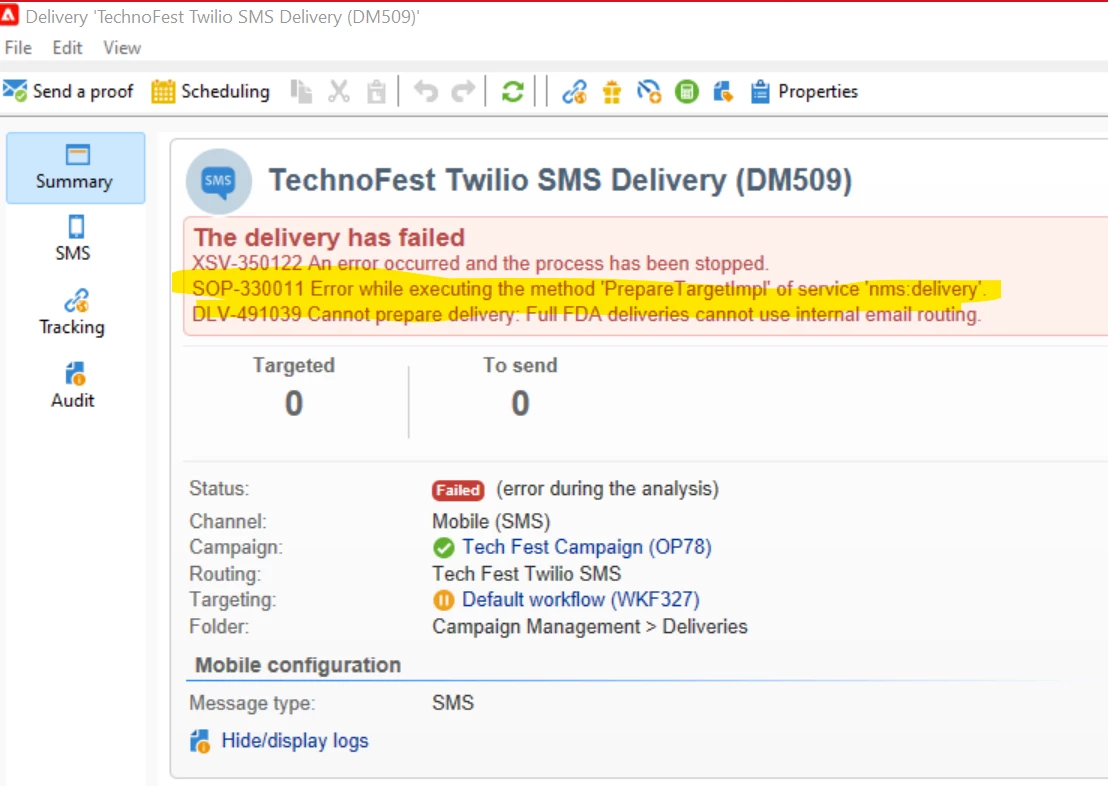 We are trying to call the third party SMS rest api call to trigger the SMS via Adobe campaign classic Mobile delivery.